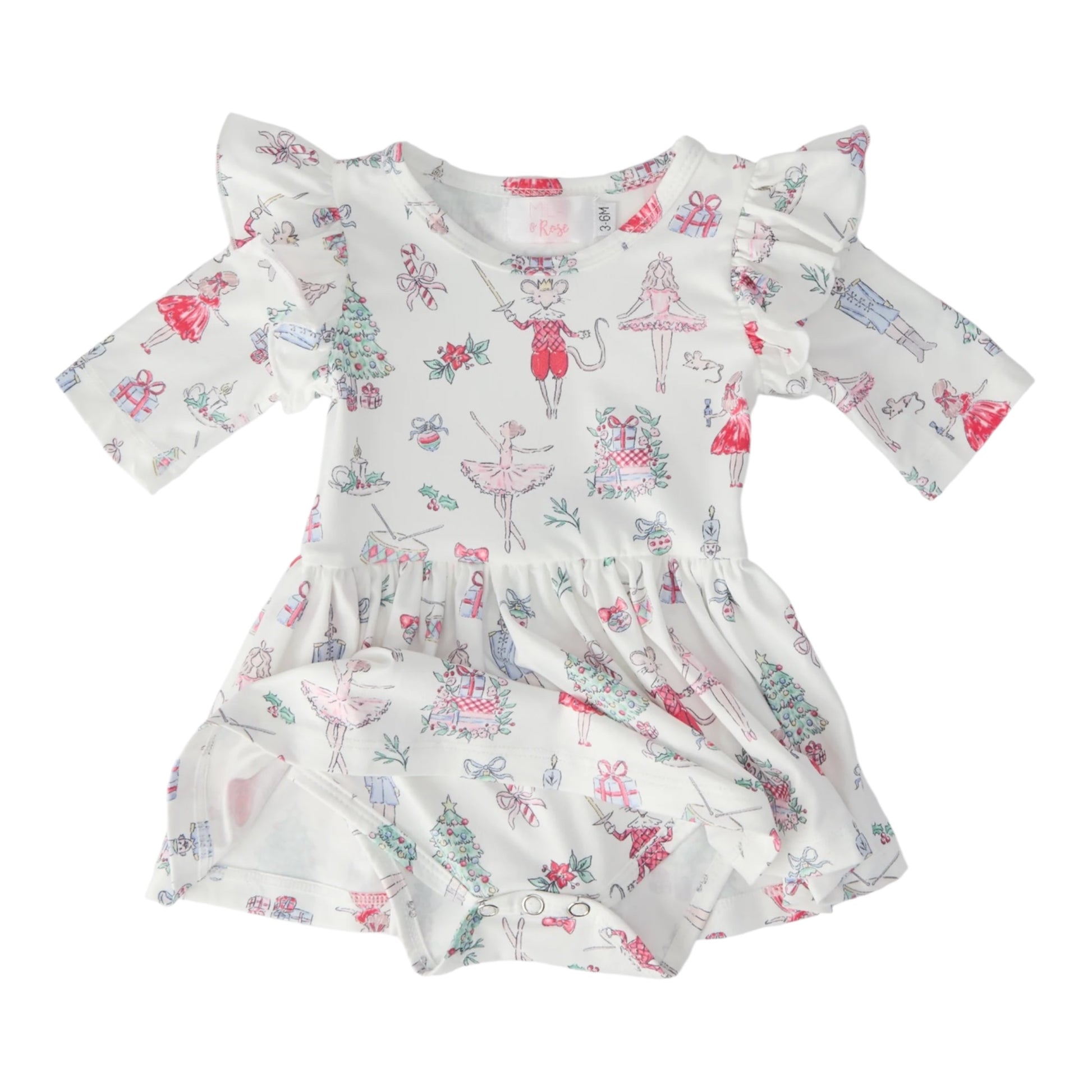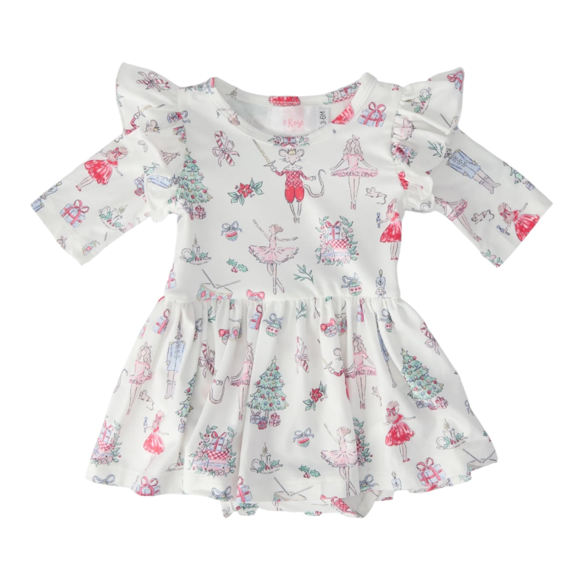 Bring the magic of the holidays to life with Clara’s Christmas Twirl Dress! Inspired by the charm of the Nutcracker season, this dress is crafted from a super soft, stretchy fabric that little ones will love to wear all season long. The whimsical holiday print features Clara, nutcrackers, ballerinas, Christmas trees, and festive details, perfect for holiday parties, church, and Christmas morning photos.