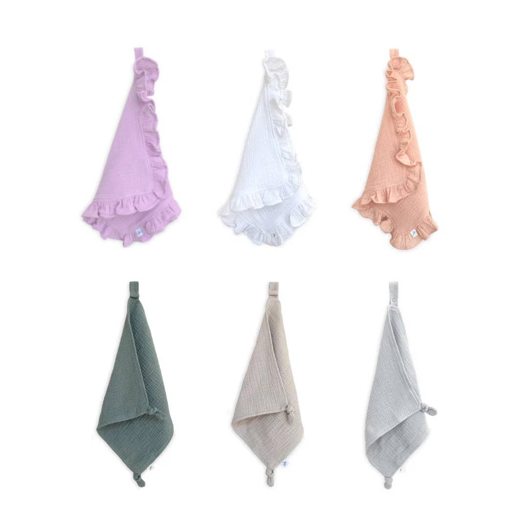 *These Cutie Loveys are perfect for providing comfort and security, while easily attaching to a pacifier, teether, or toy. They are soft, breathable, double layered, and are made out 100% organic muslin cotton. The Cutie Loveys come in two styles: knot and ruffle.