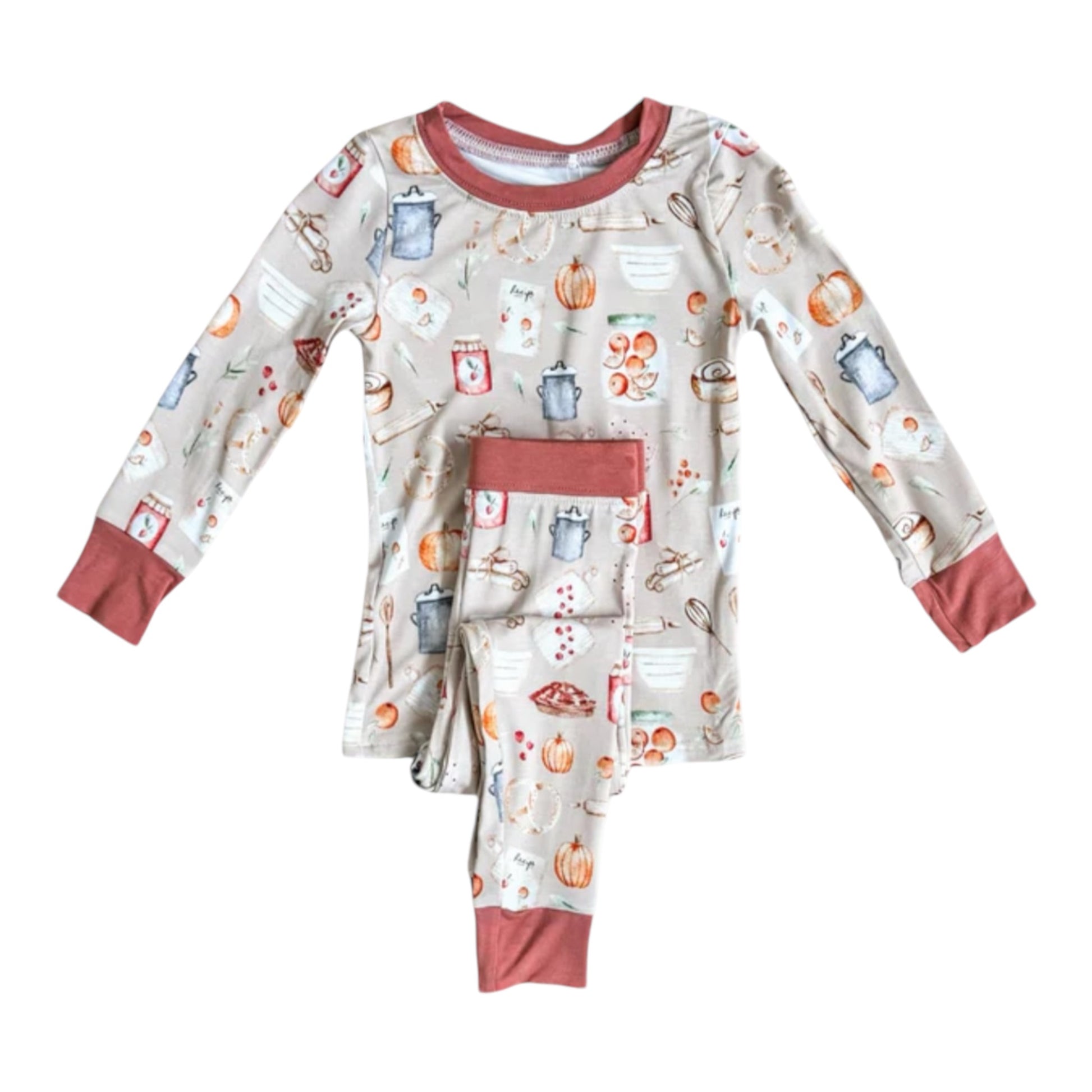 If you haven’t tried bamboo, it is time! These are the softest pajamas that you and your babies will love in no time. These have a soft elastic waist band with the cutest fall baking design.