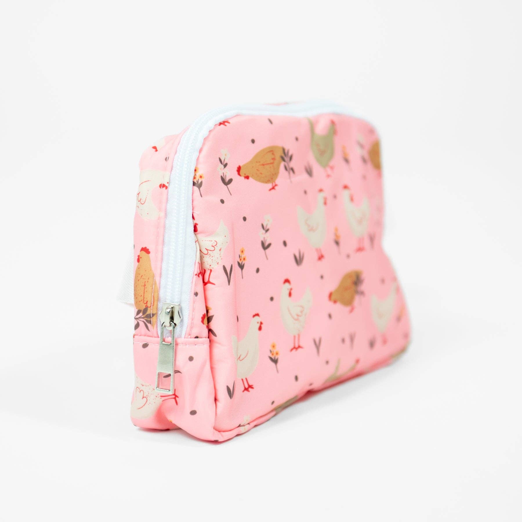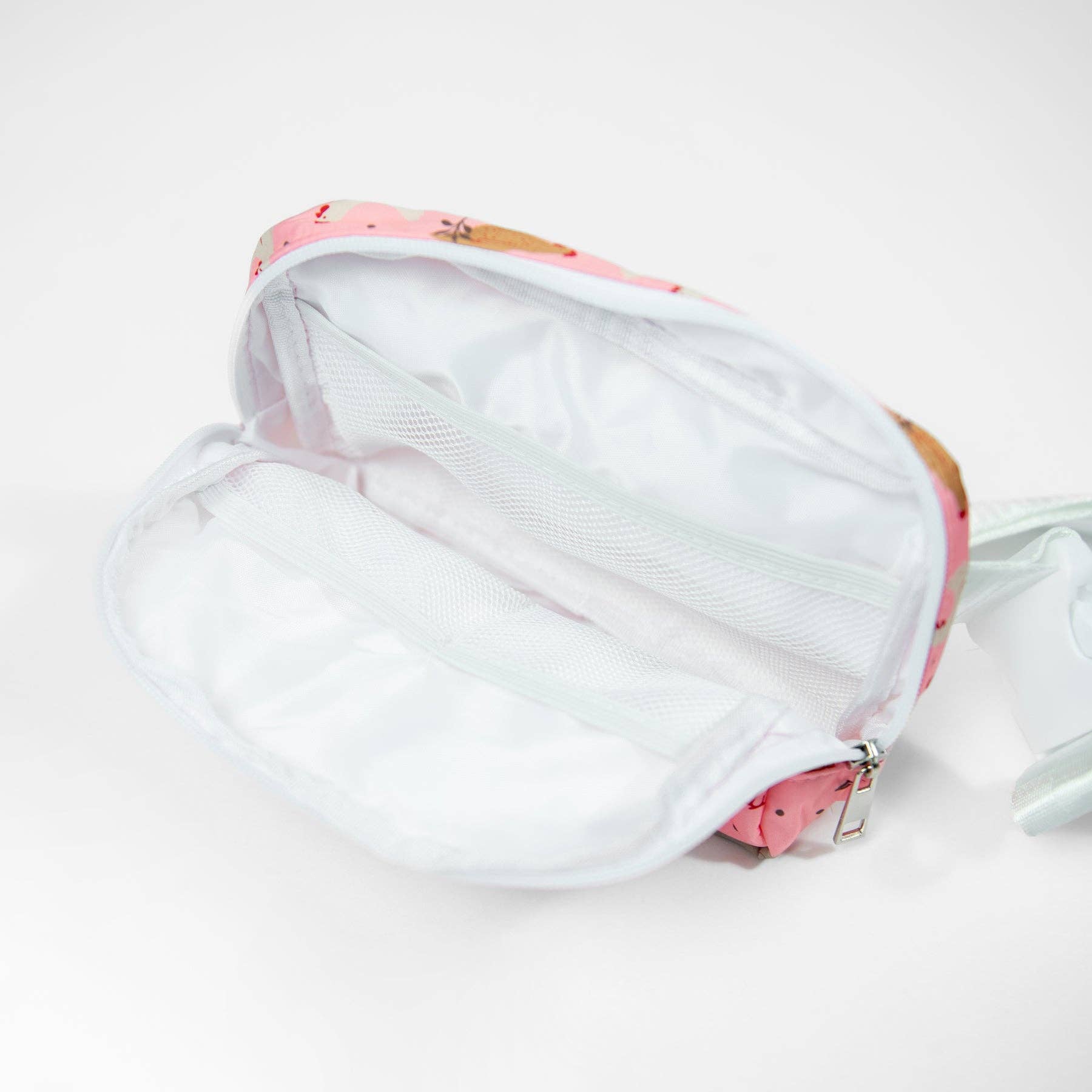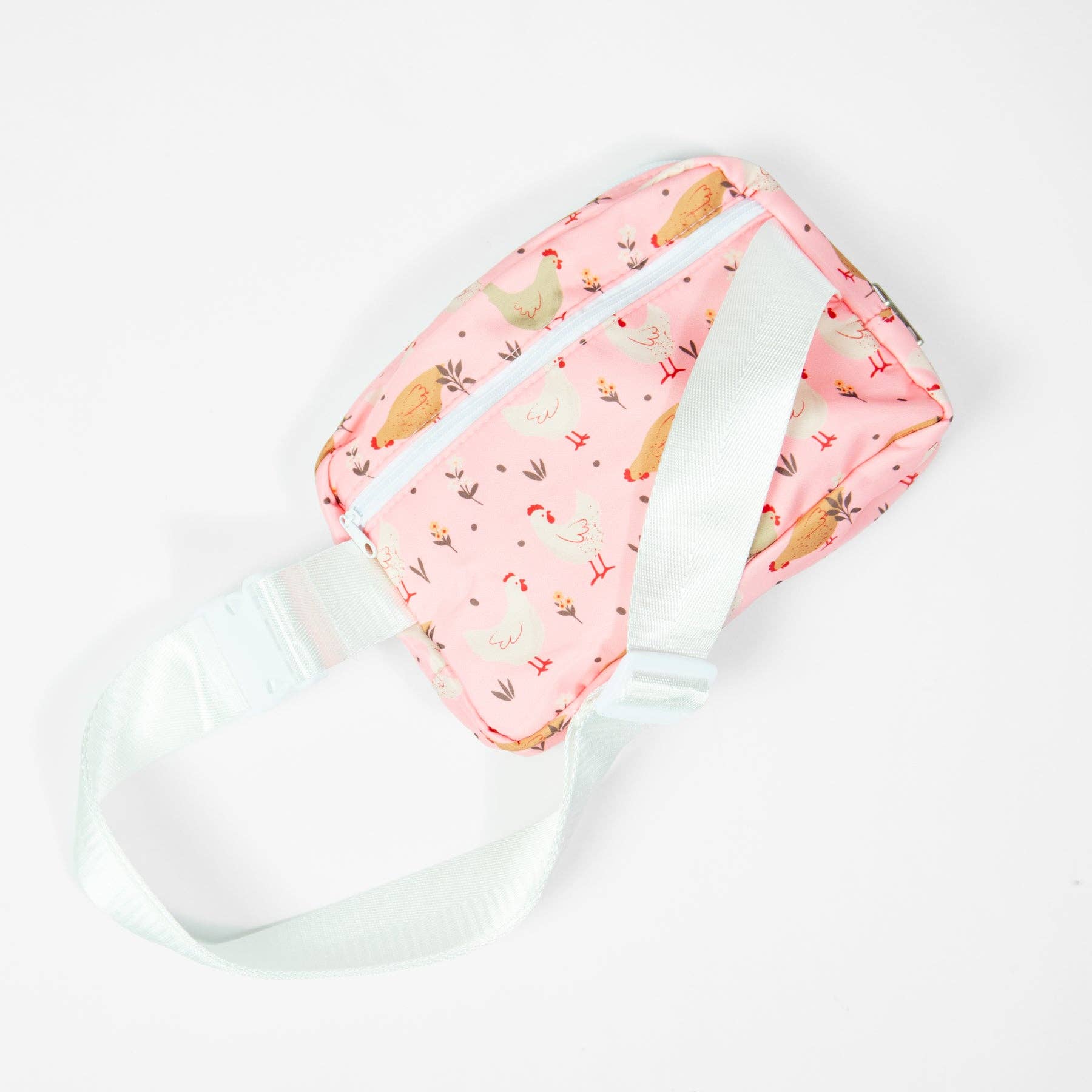 This Pink Chicken Belt Bag is the perfect accessory for little adventurers who love farm charm. Featuring an all-over chicken print on a pastel pink background, this hands-free bag is great for carrying snacks, treasures, or tiny toys—whether you’re headed to the market or the backyard coop.