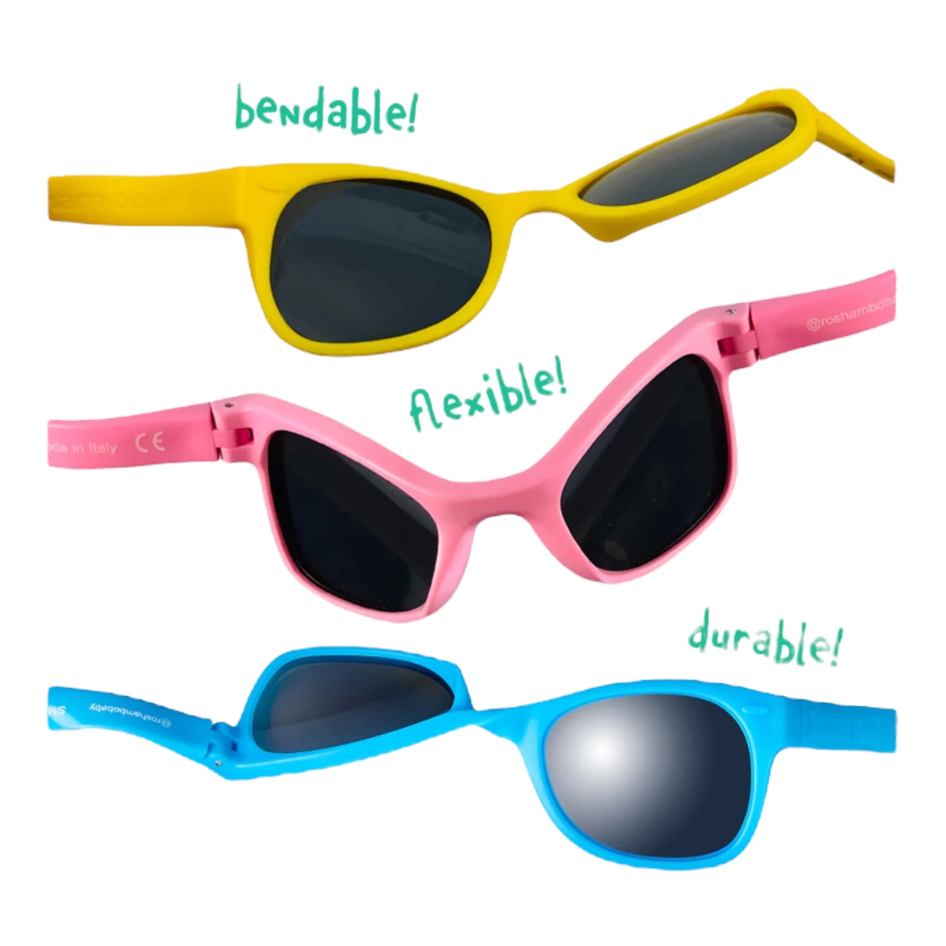 Our baby sunglasses size fits ages 0-24 months, depending on your baby's head size. Grab an adjustable head strap and ear adjuster kit to ensure a better fit on infants or toddlers growing into a larger size.