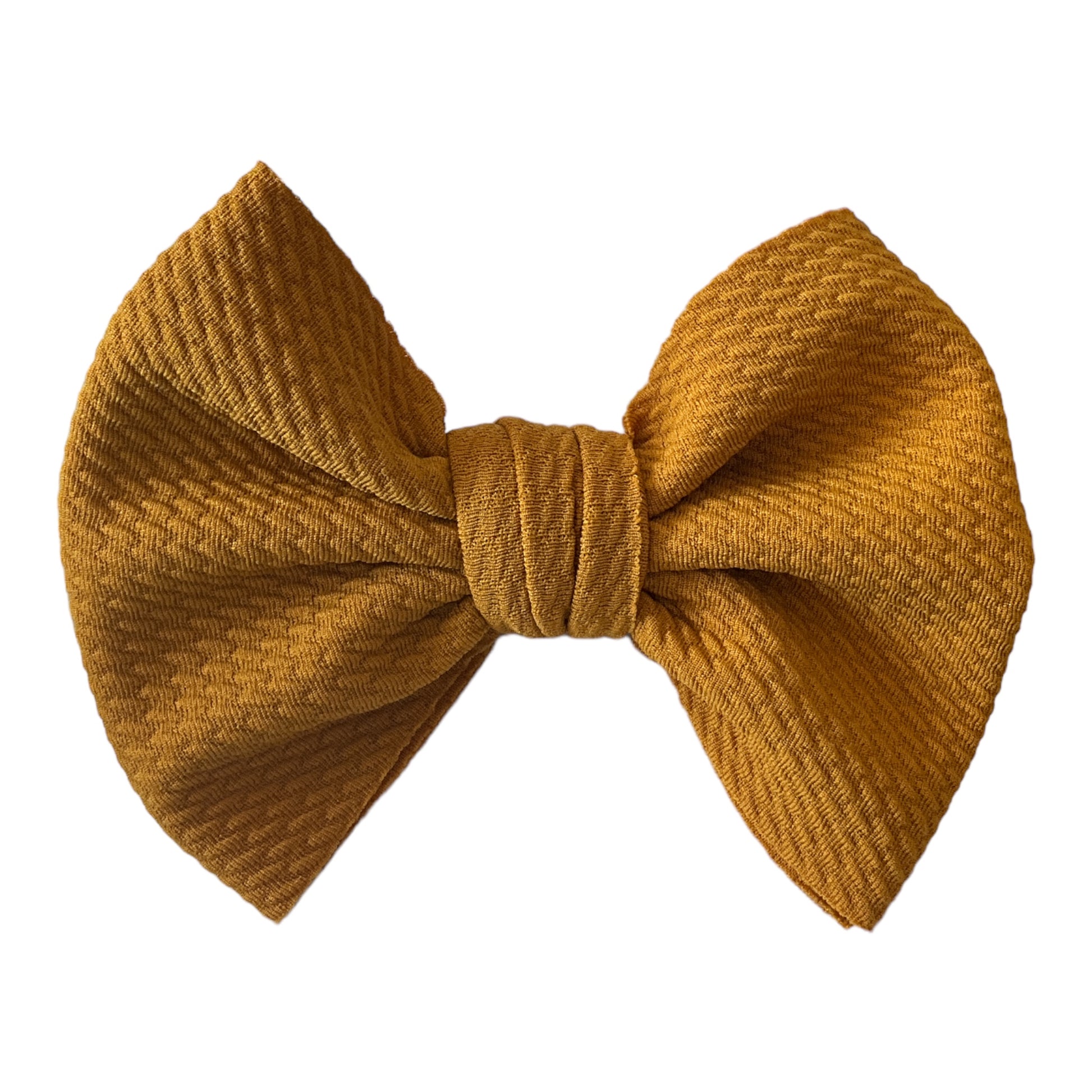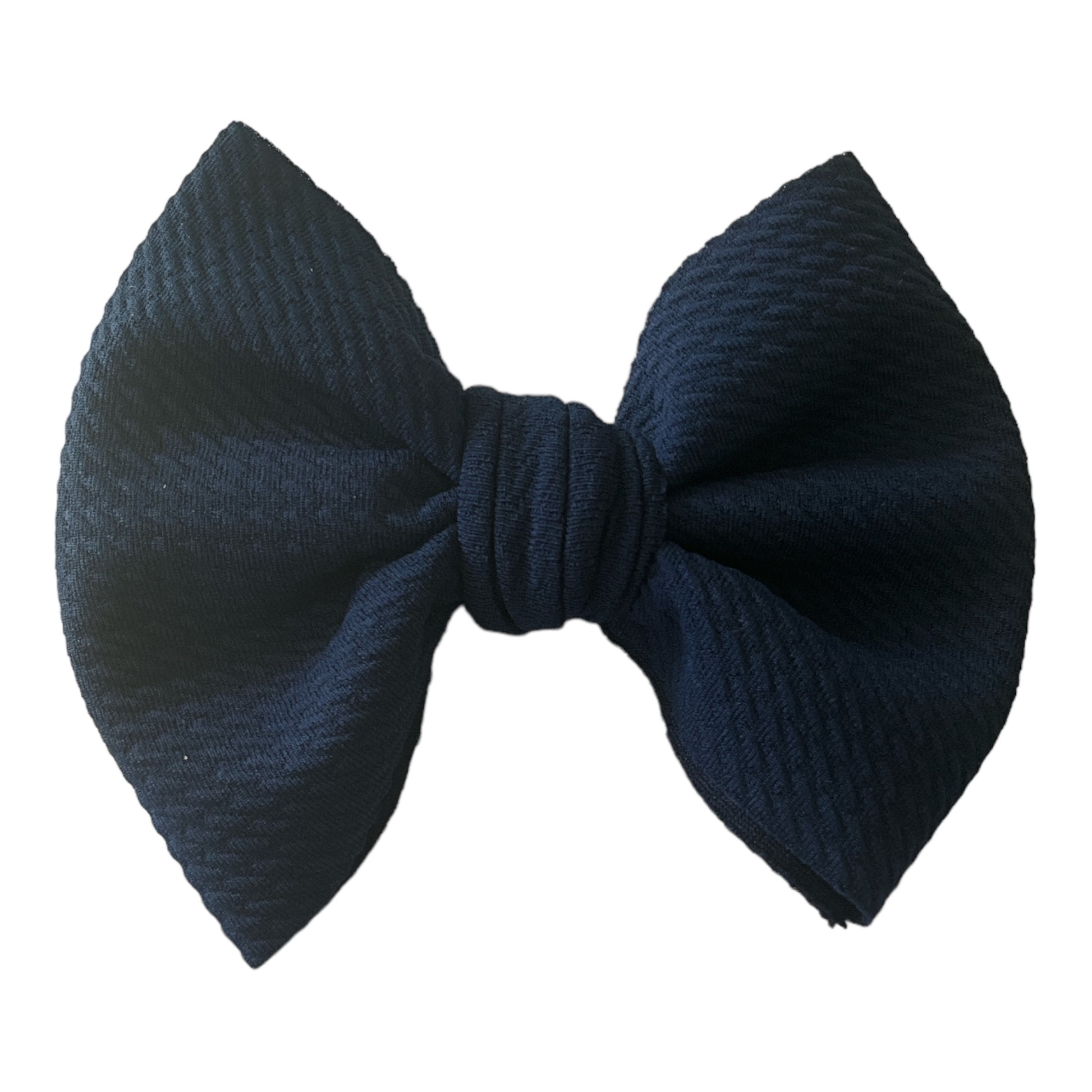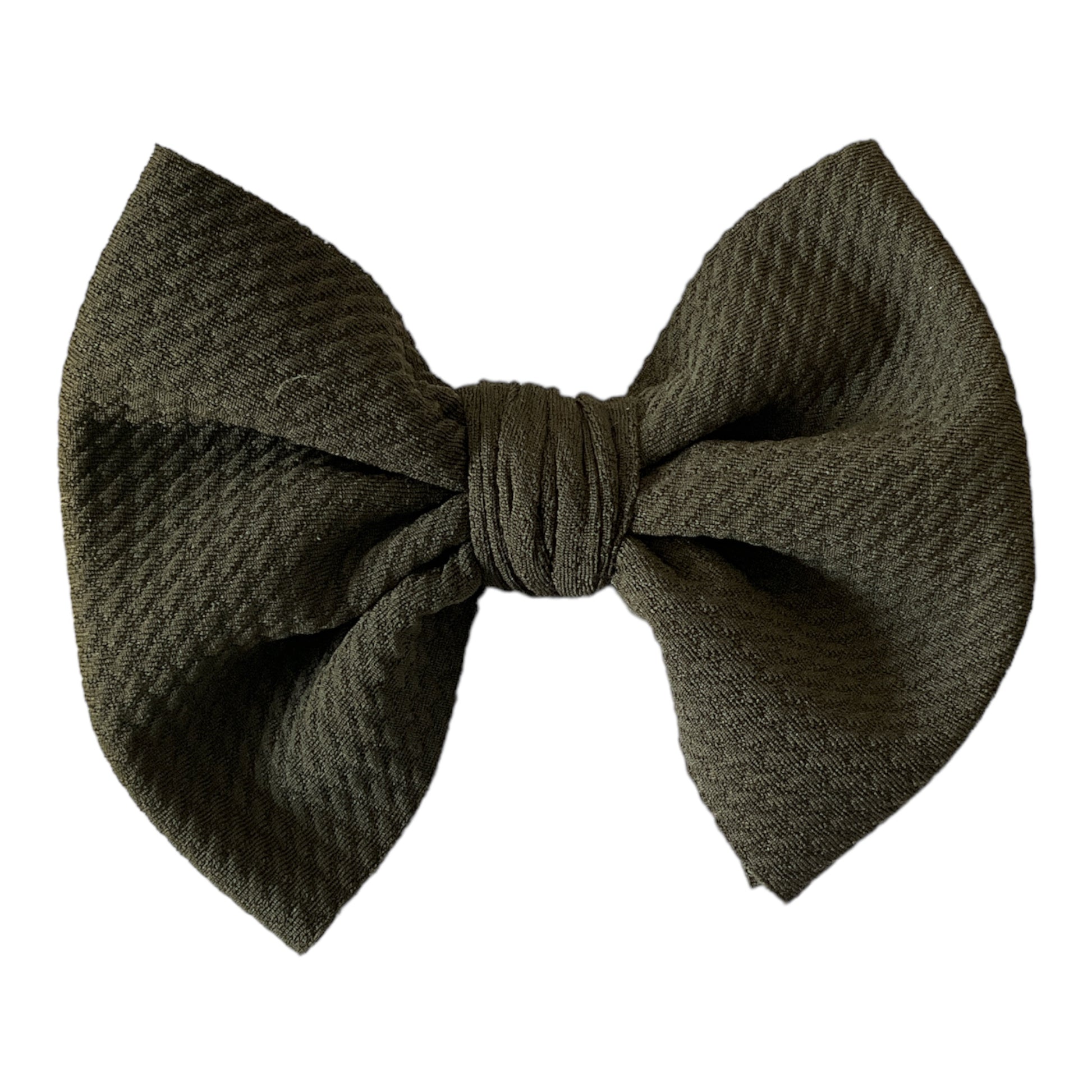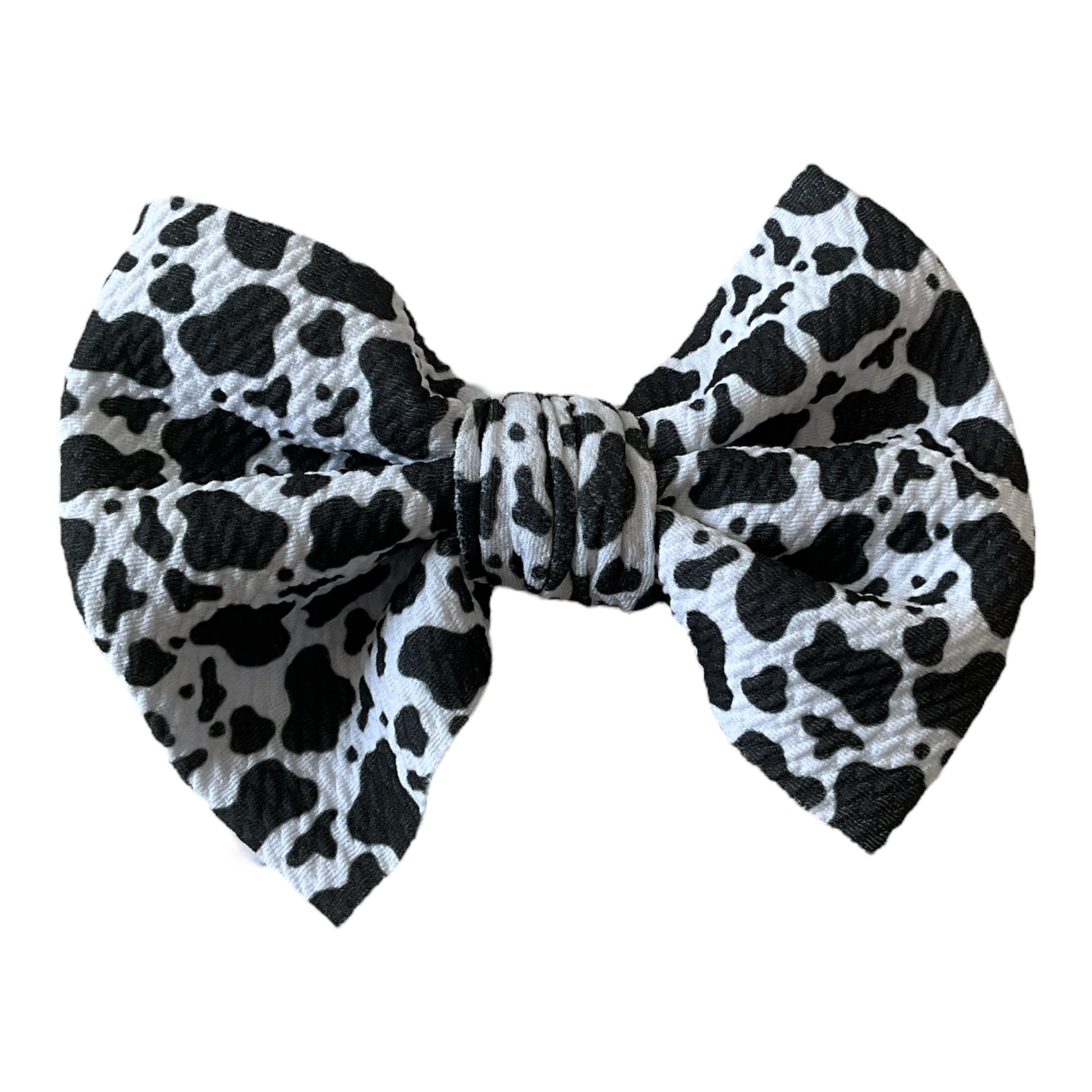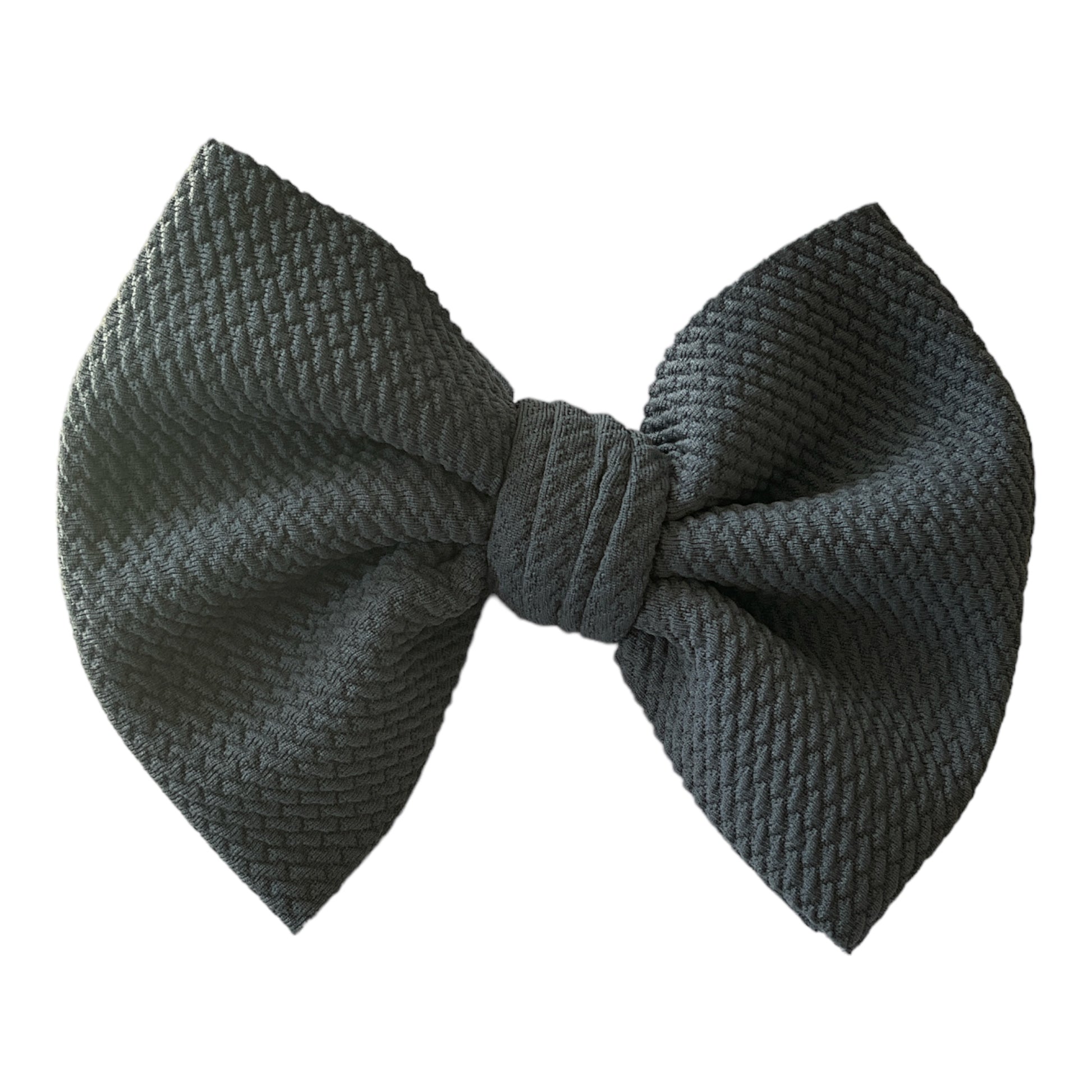 These hair bows are handmade in Michigan. They are 5” and made from Liverpool fabric and have a nylon headband. They are extremely soft and make any outfit pop!