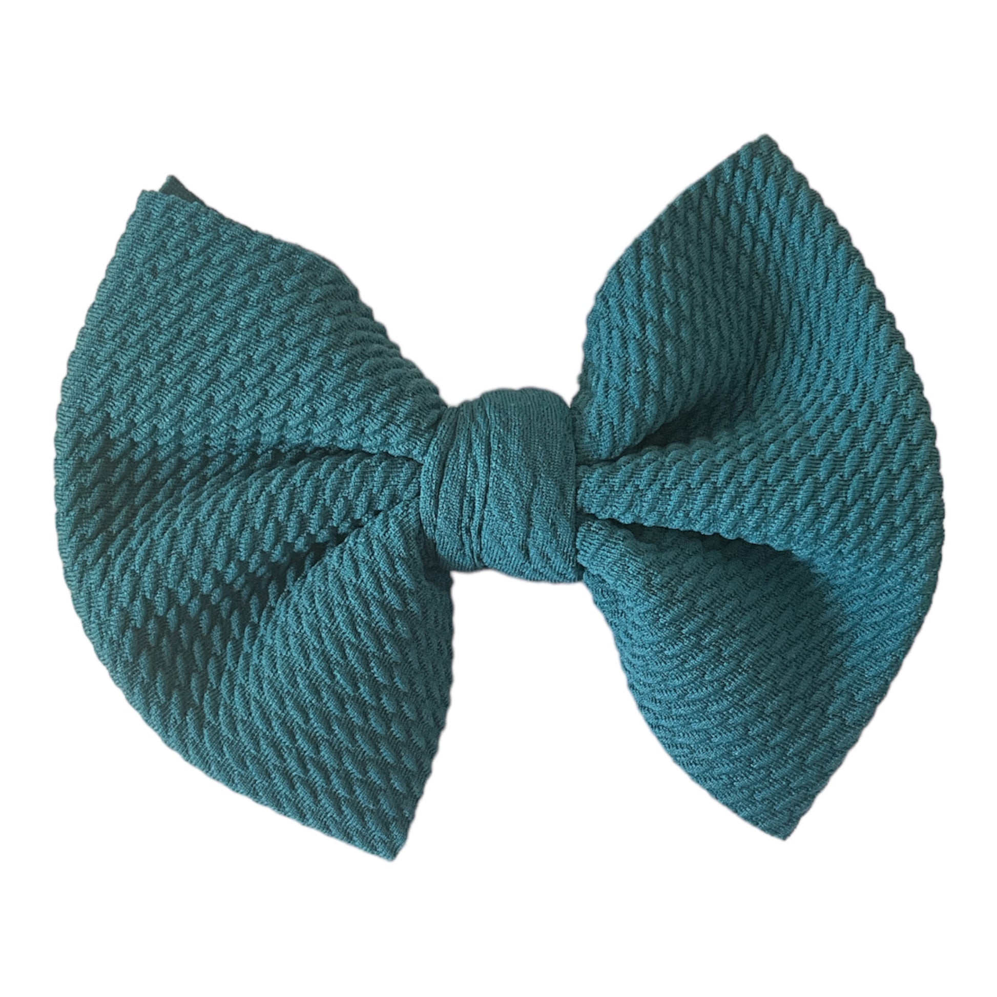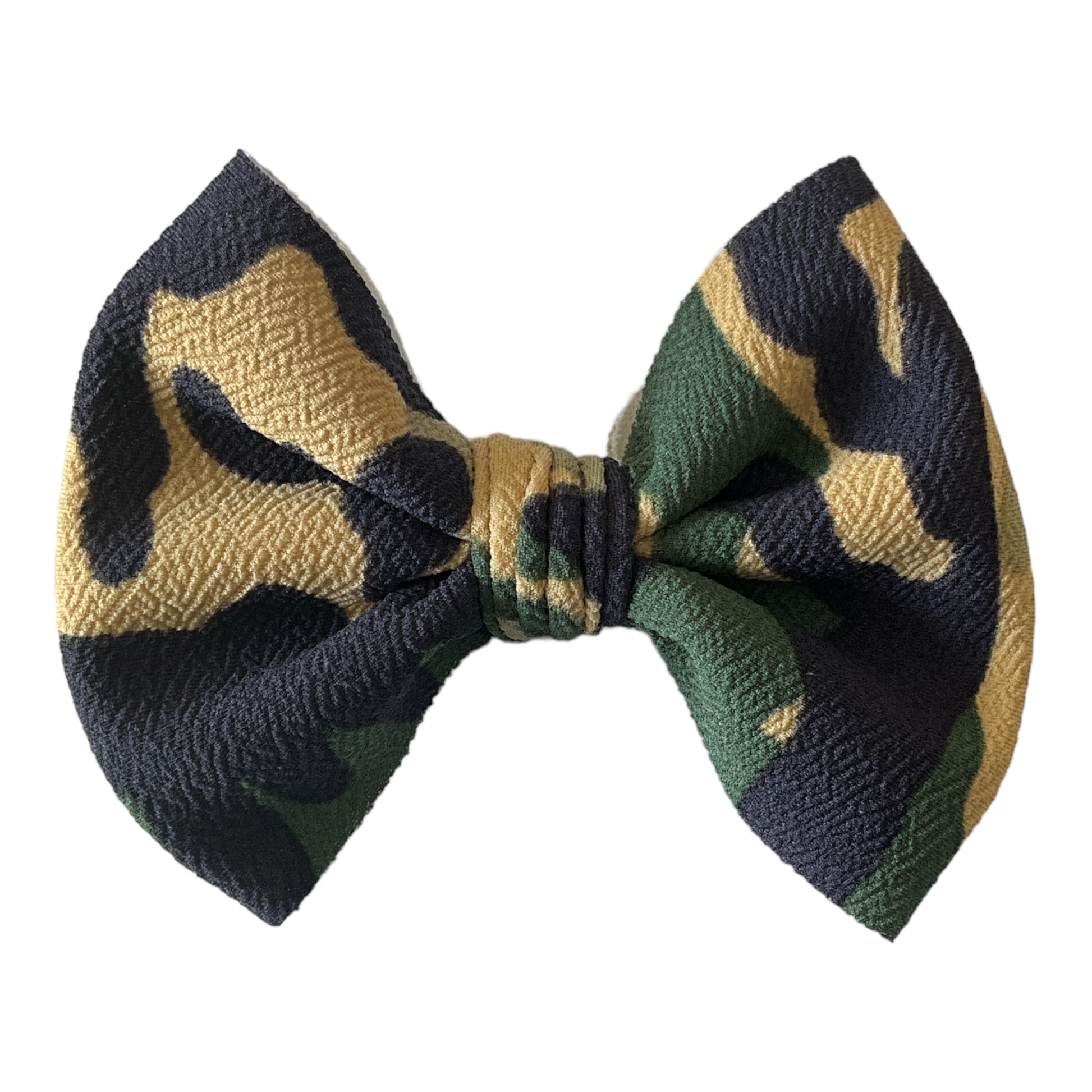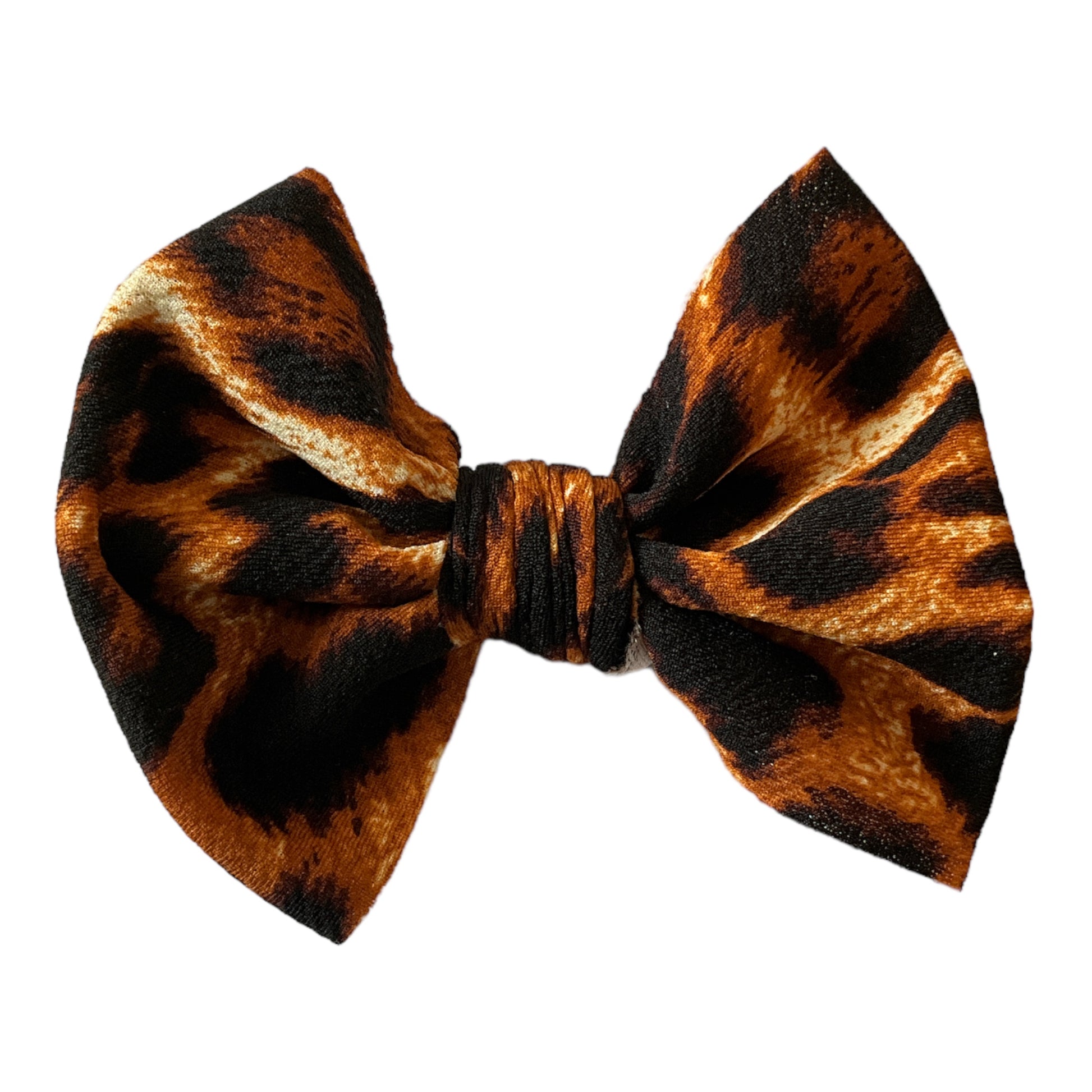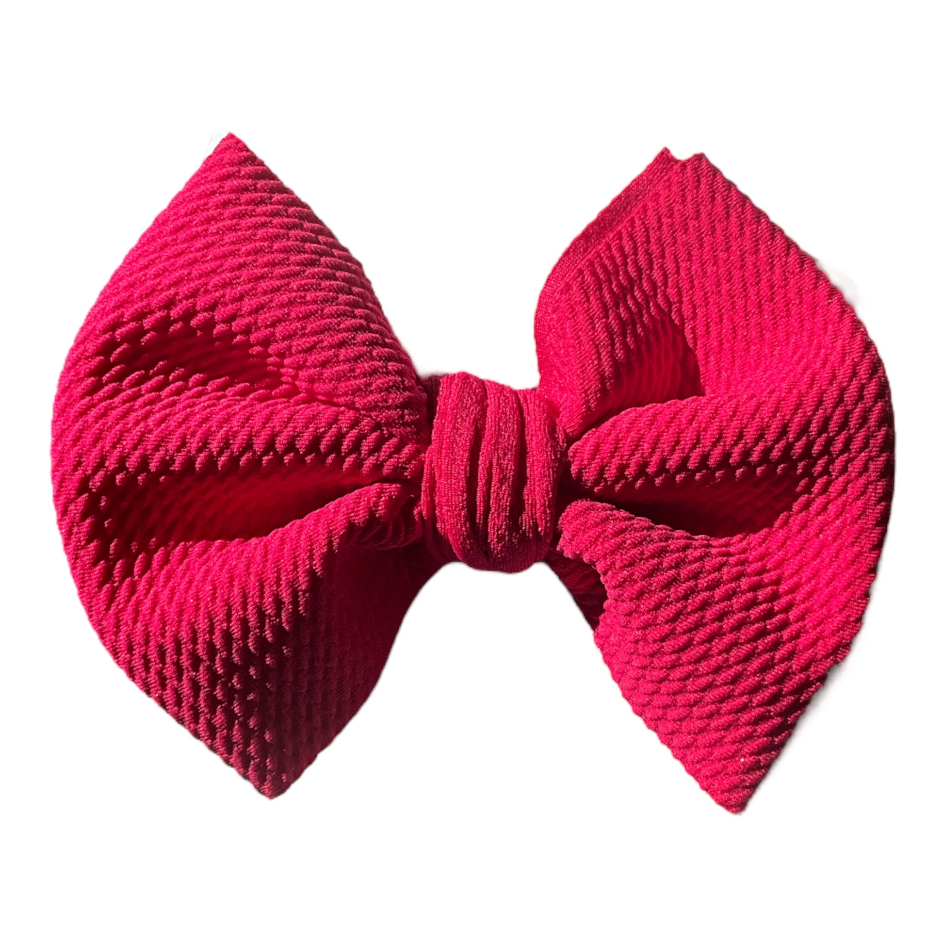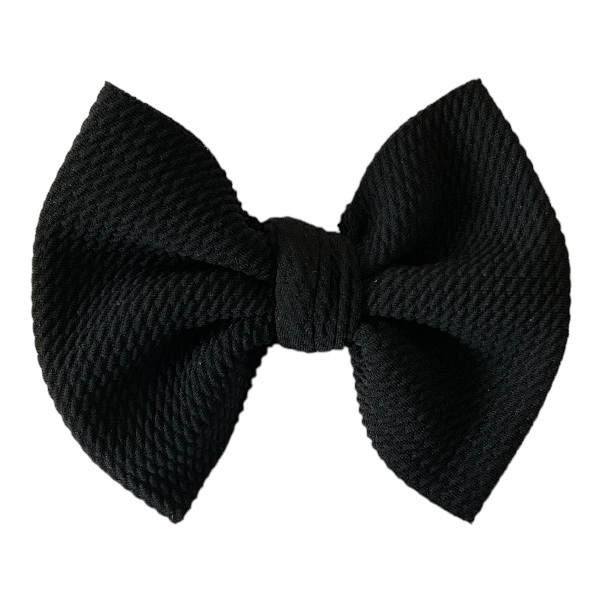 These hair bows are handmade in Michigan. They are 5” and made from Liverpool fabric and have a nylon headband. They are extremely soft and make any outfit pop!
