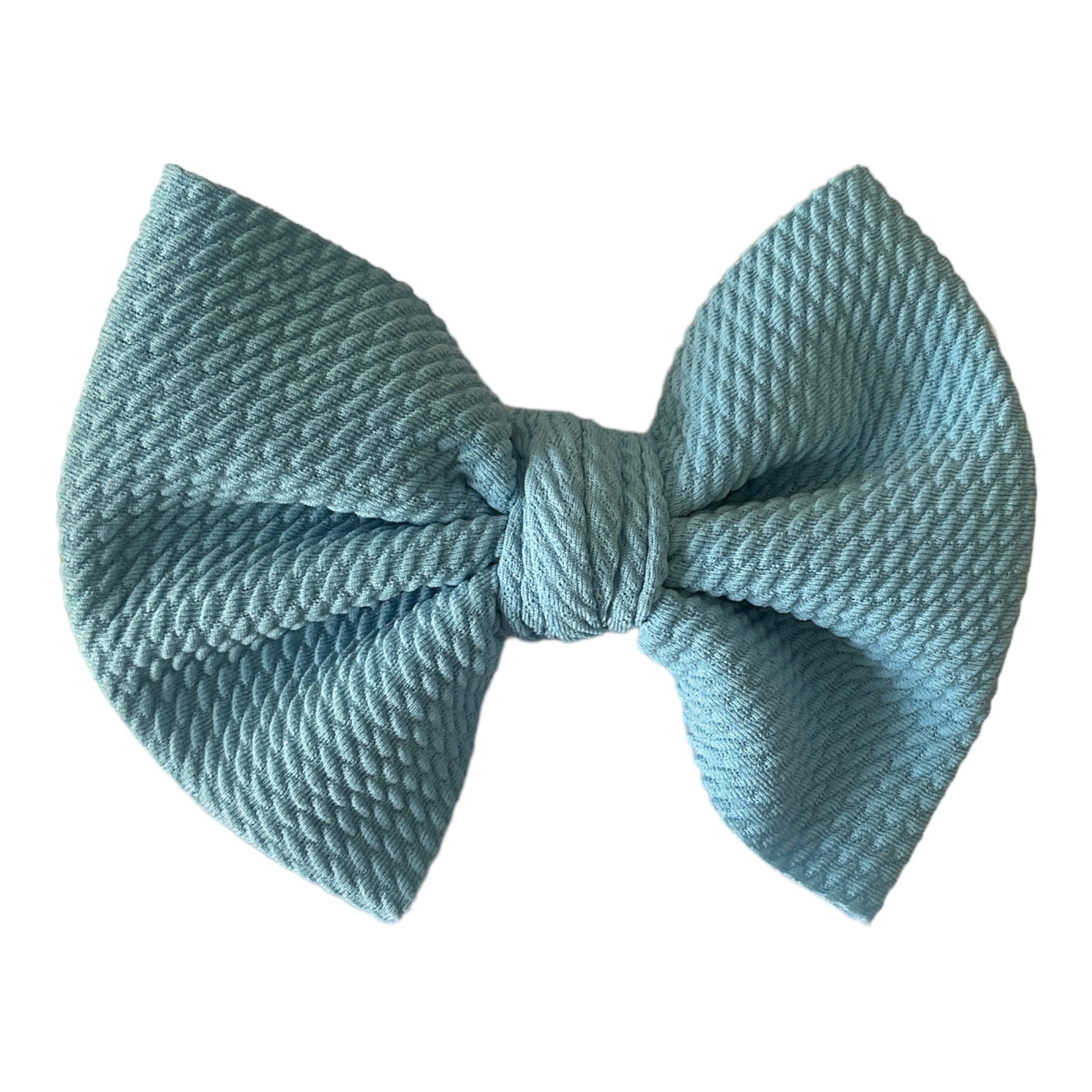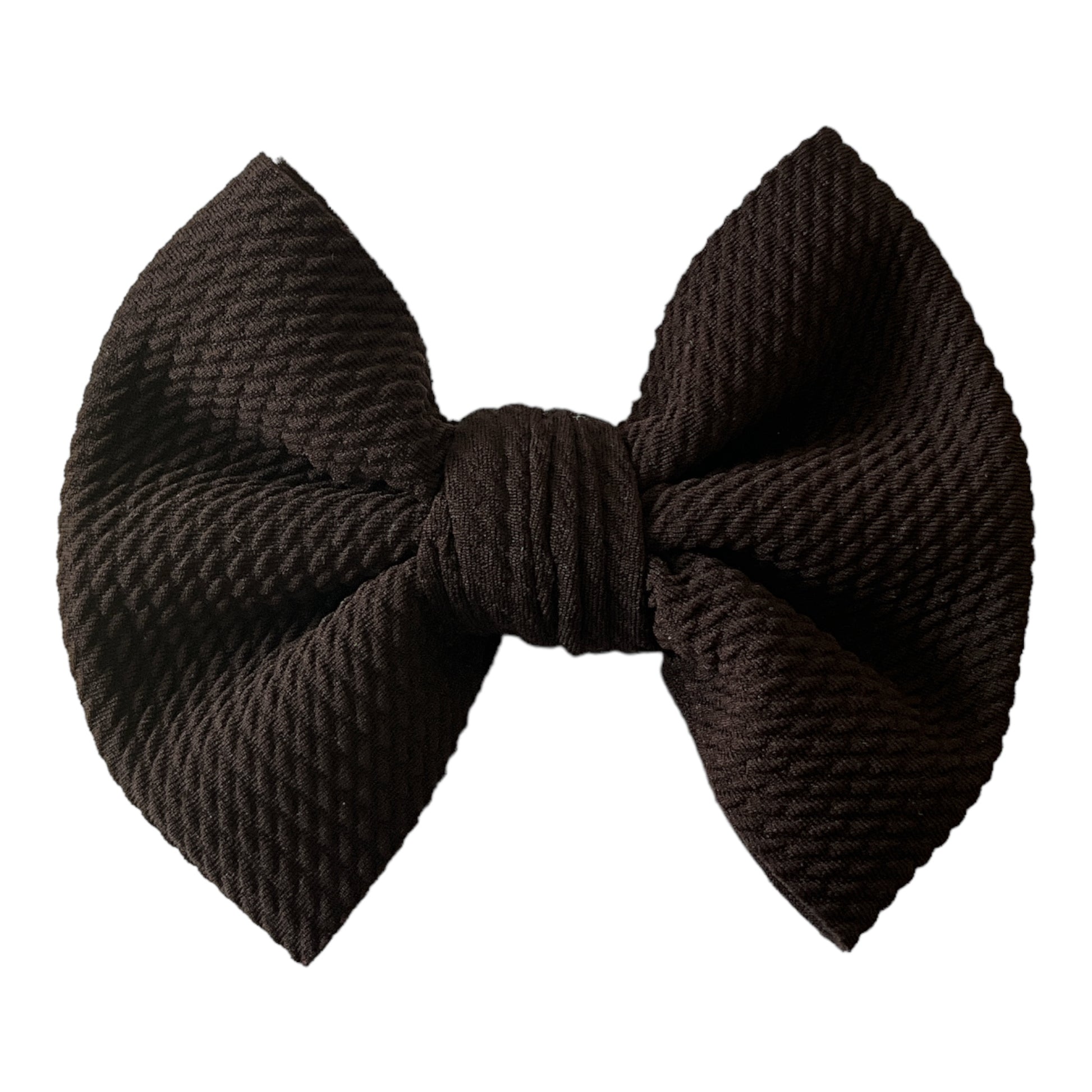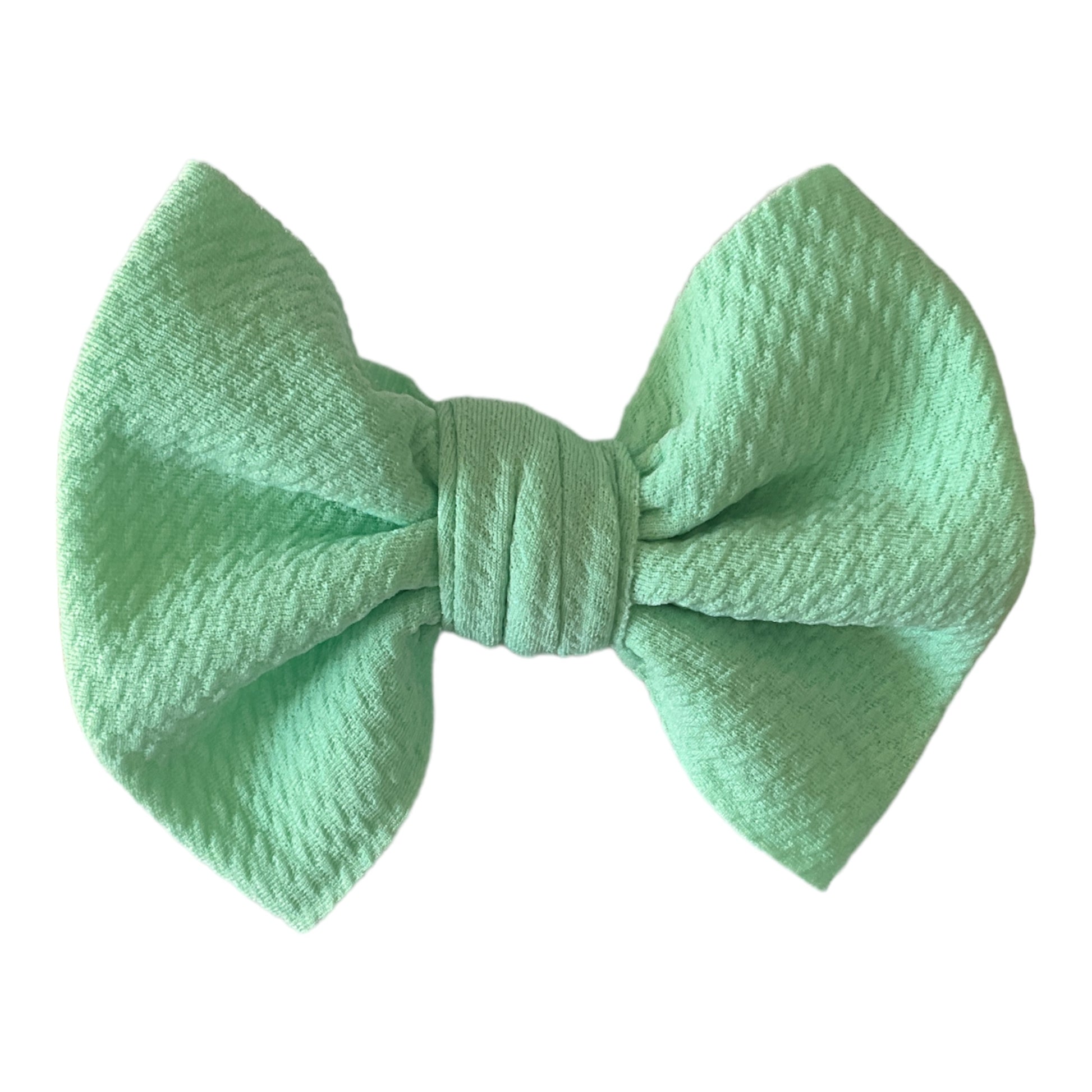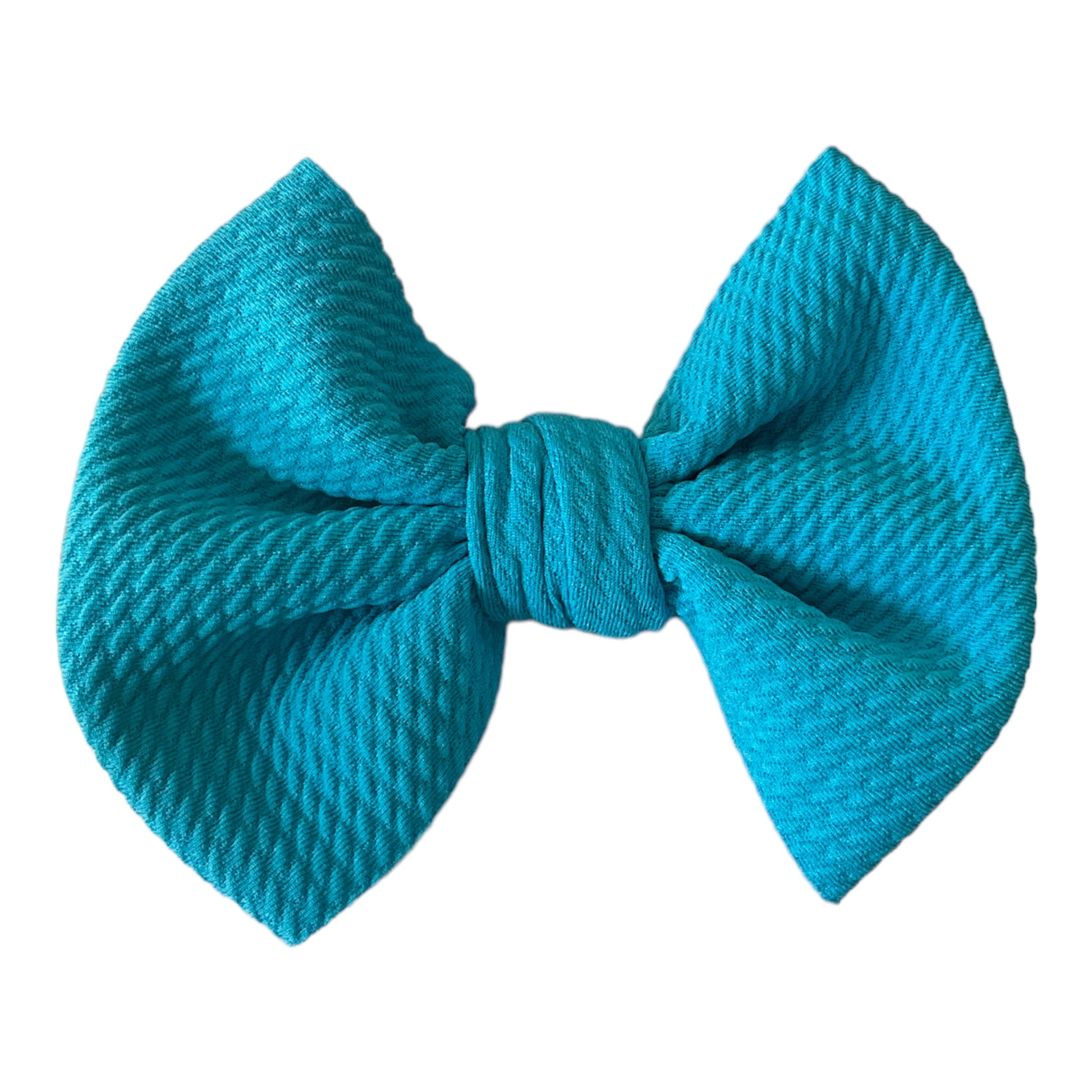 These hair bows are handmade in Michigan. They are 5” and made from Liverpool fabric and have a nylon headband. They are extremely soft and make any outfit pop!