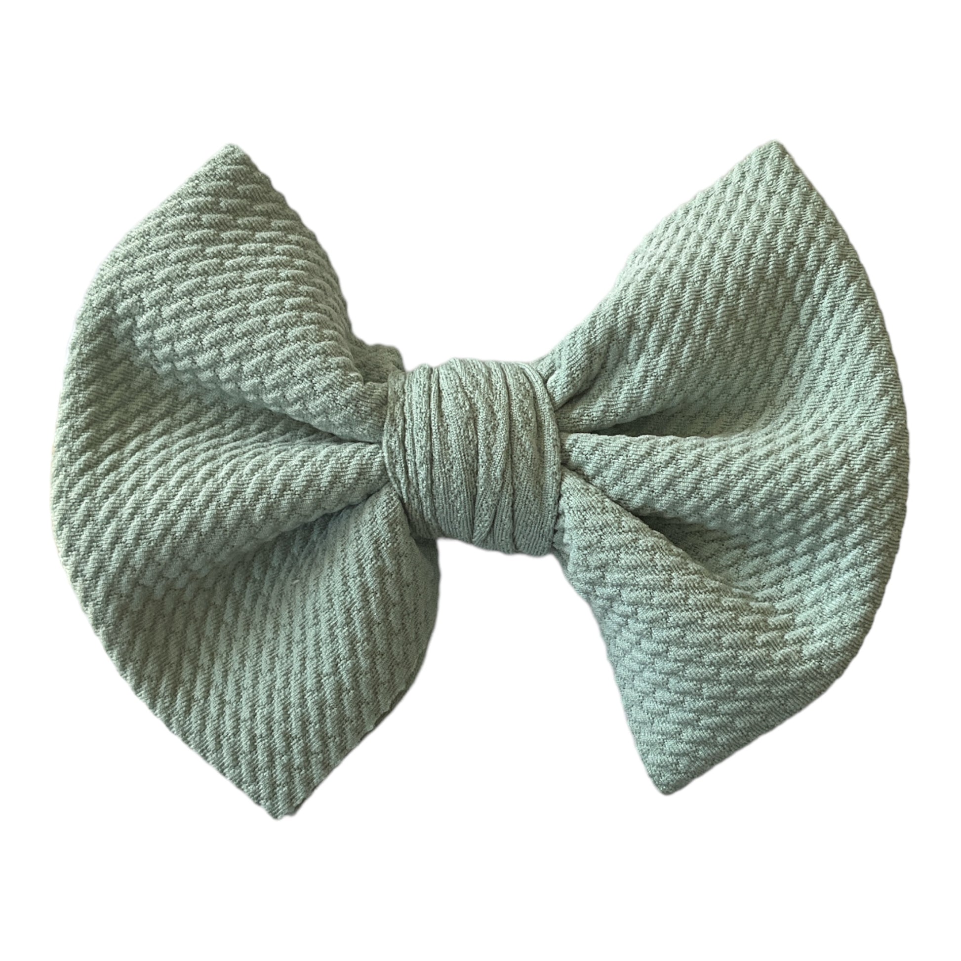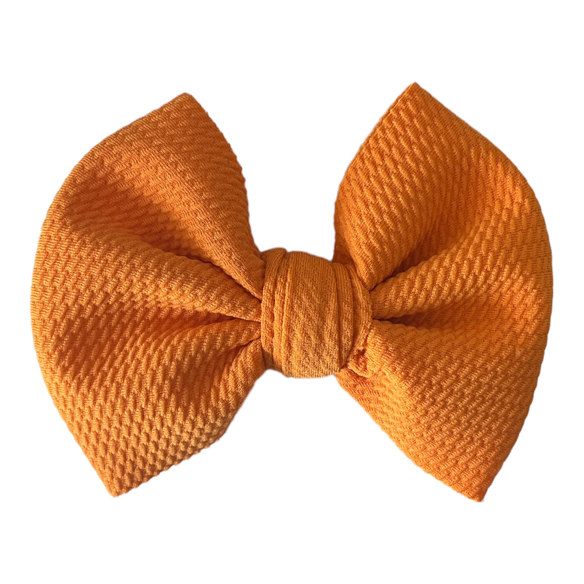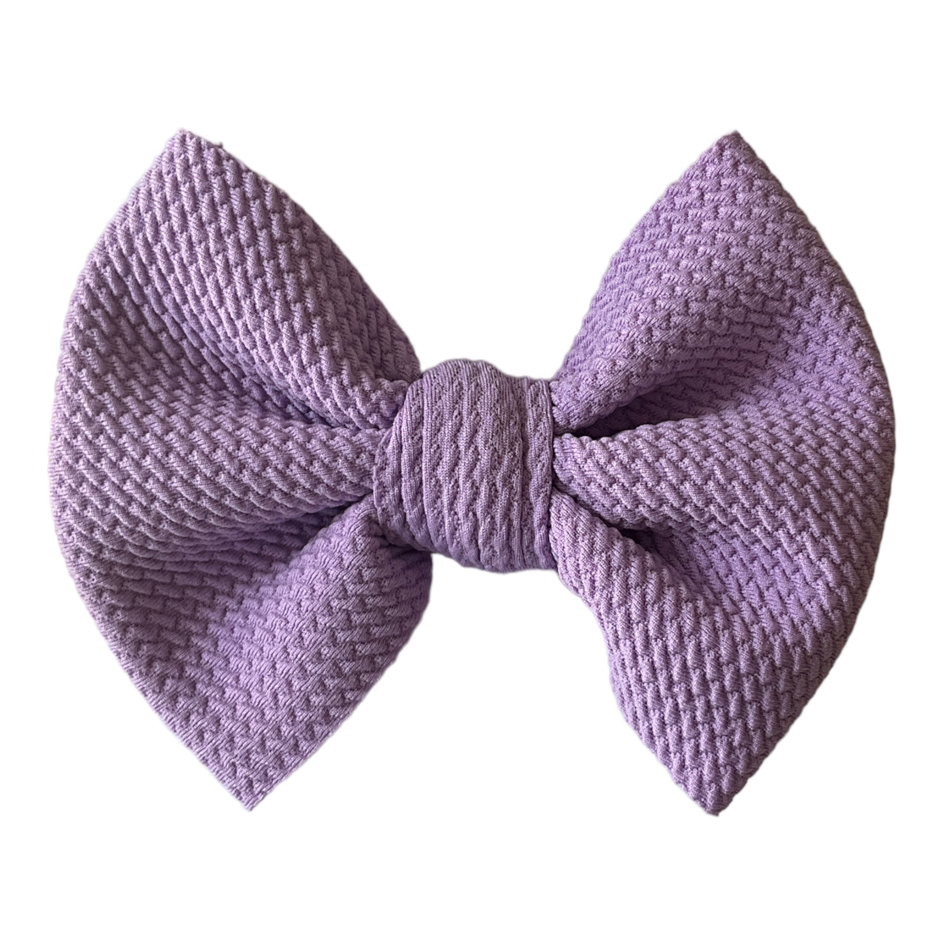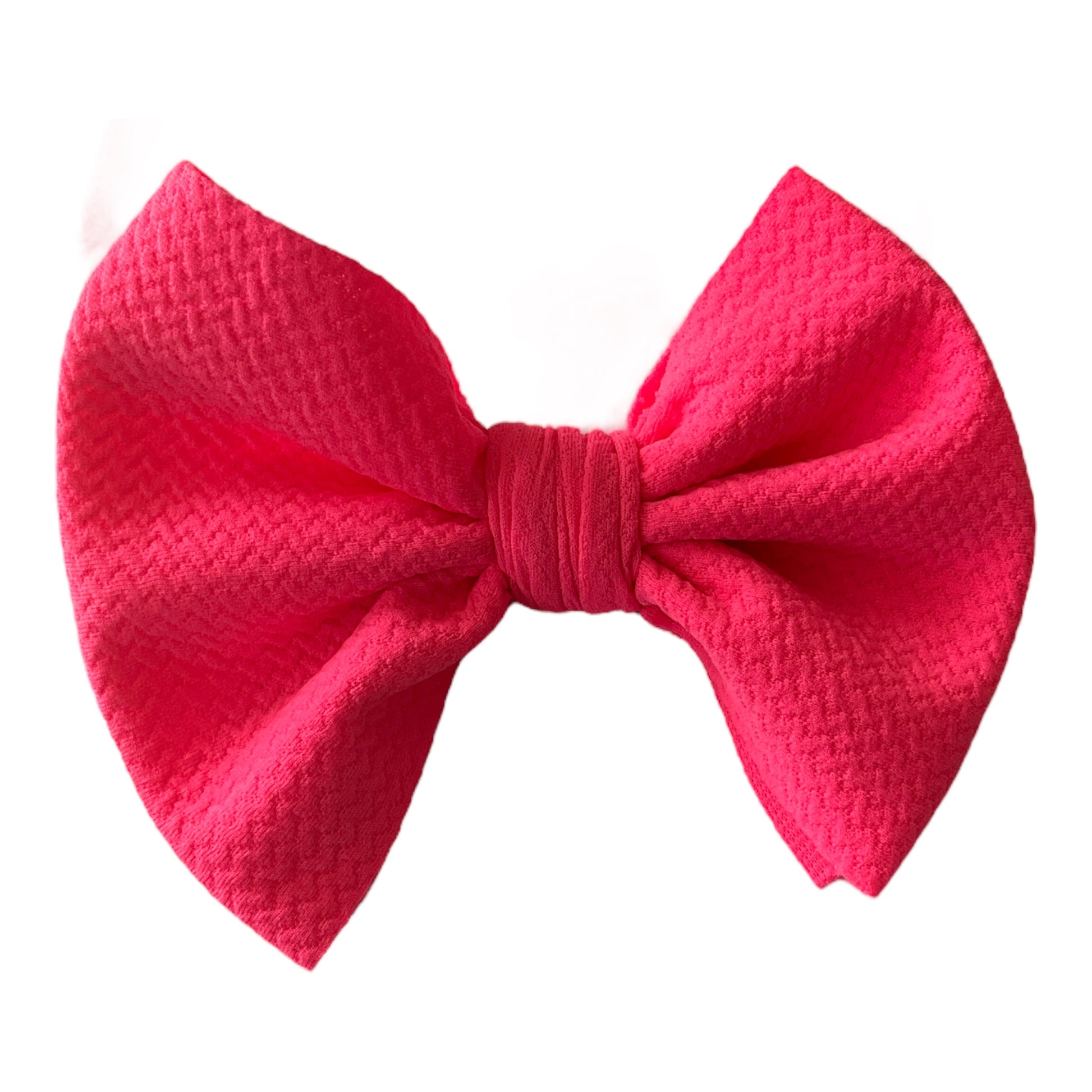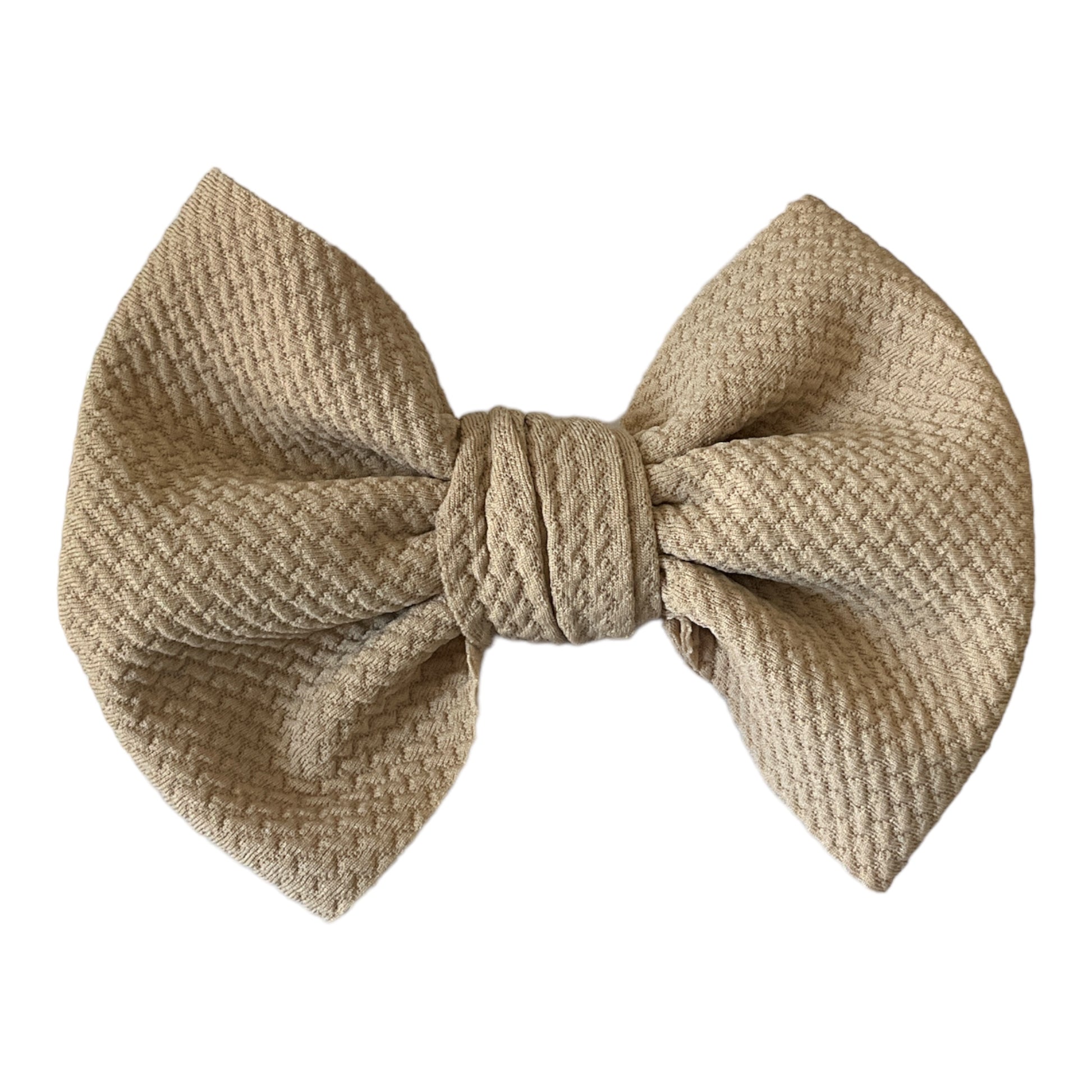 These hair bows are handmade in Michigan. They are 5” and made from Liverpool fabric and have a nylon headband. They are extremely soft and make any outfit pop!