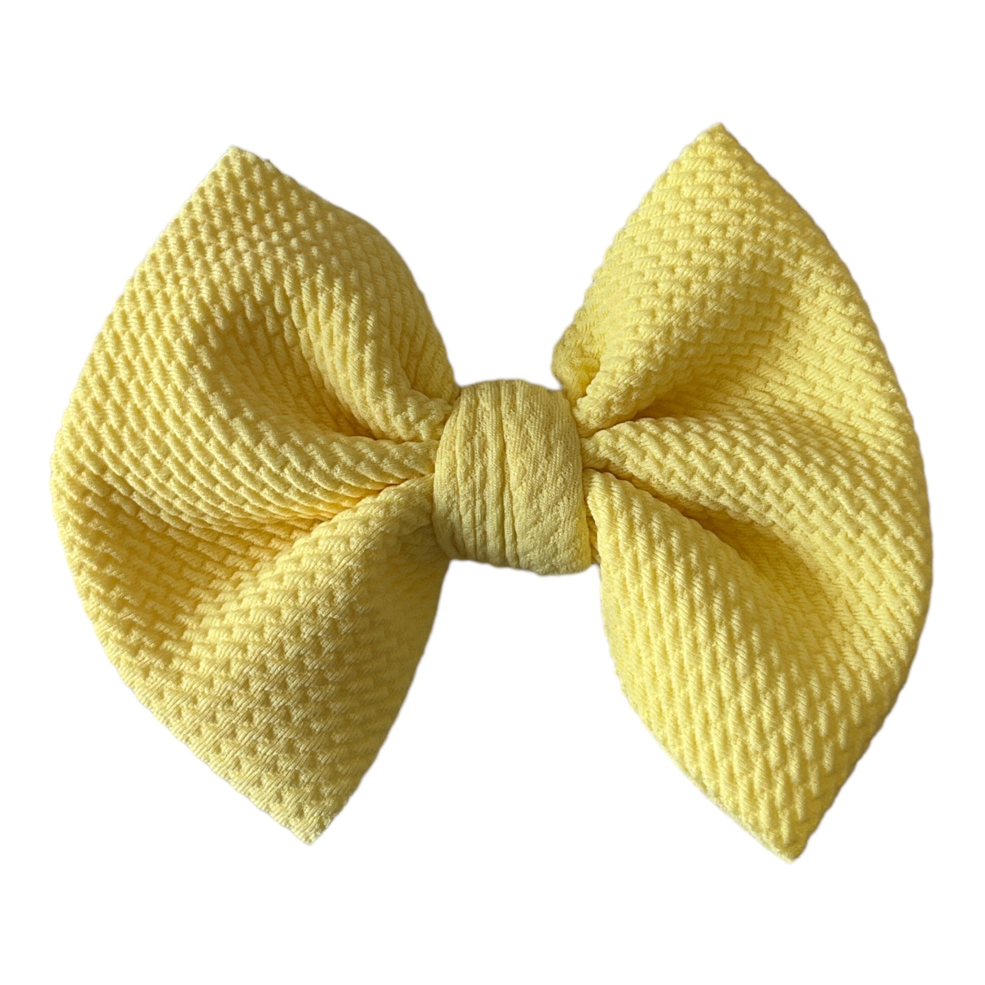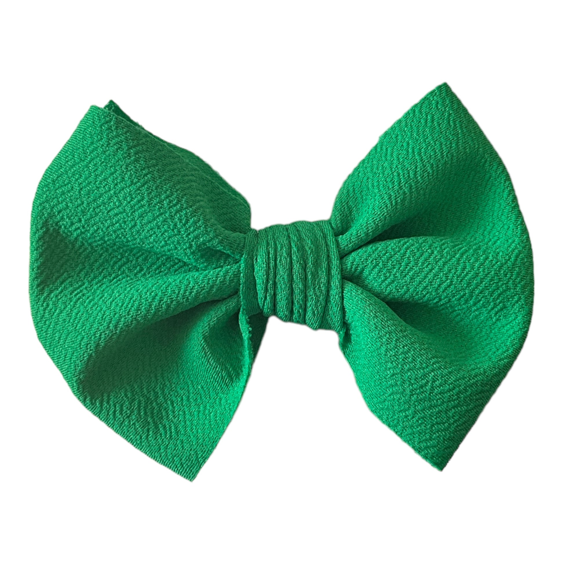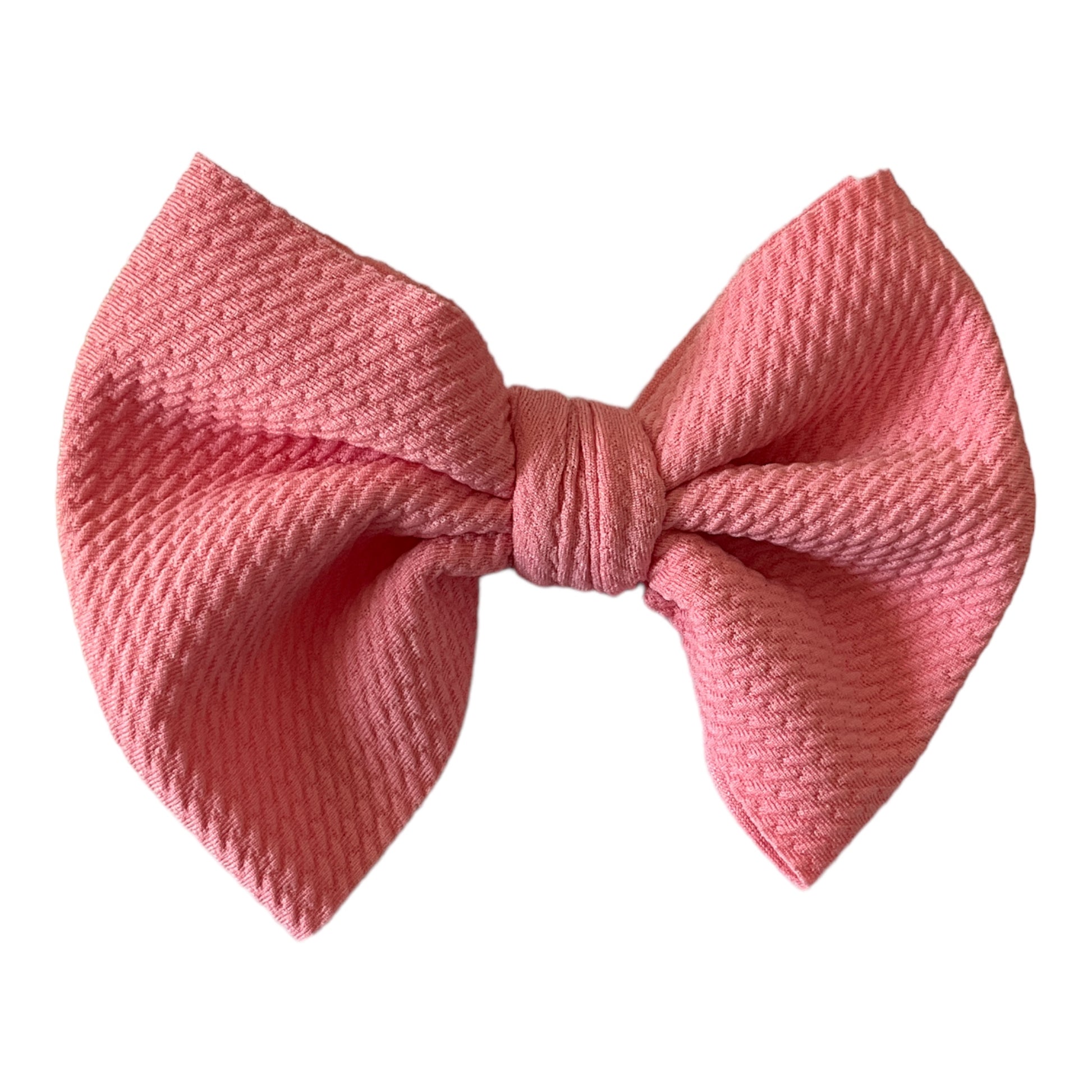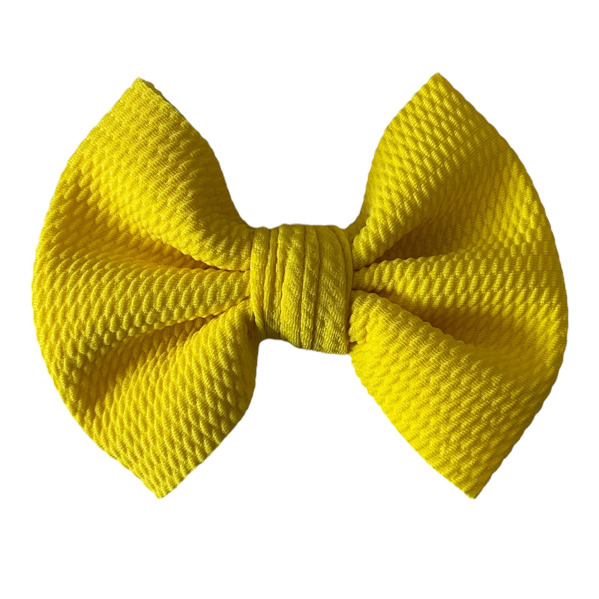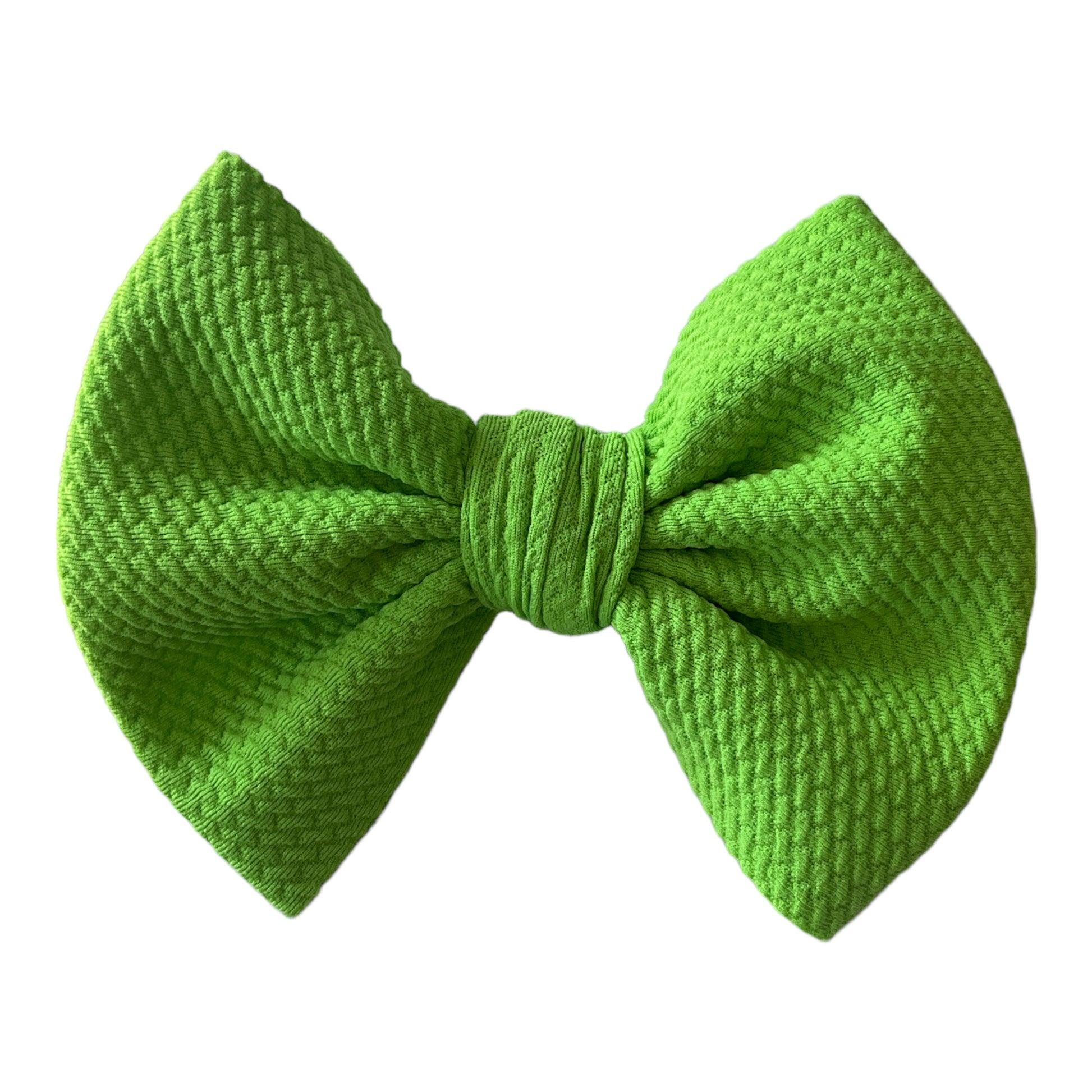 These hair bows are handmade in Michigan. They are 5” and made from Liverpool fabric and have a nylon headband. They are extremely soft and make any outfit pop!