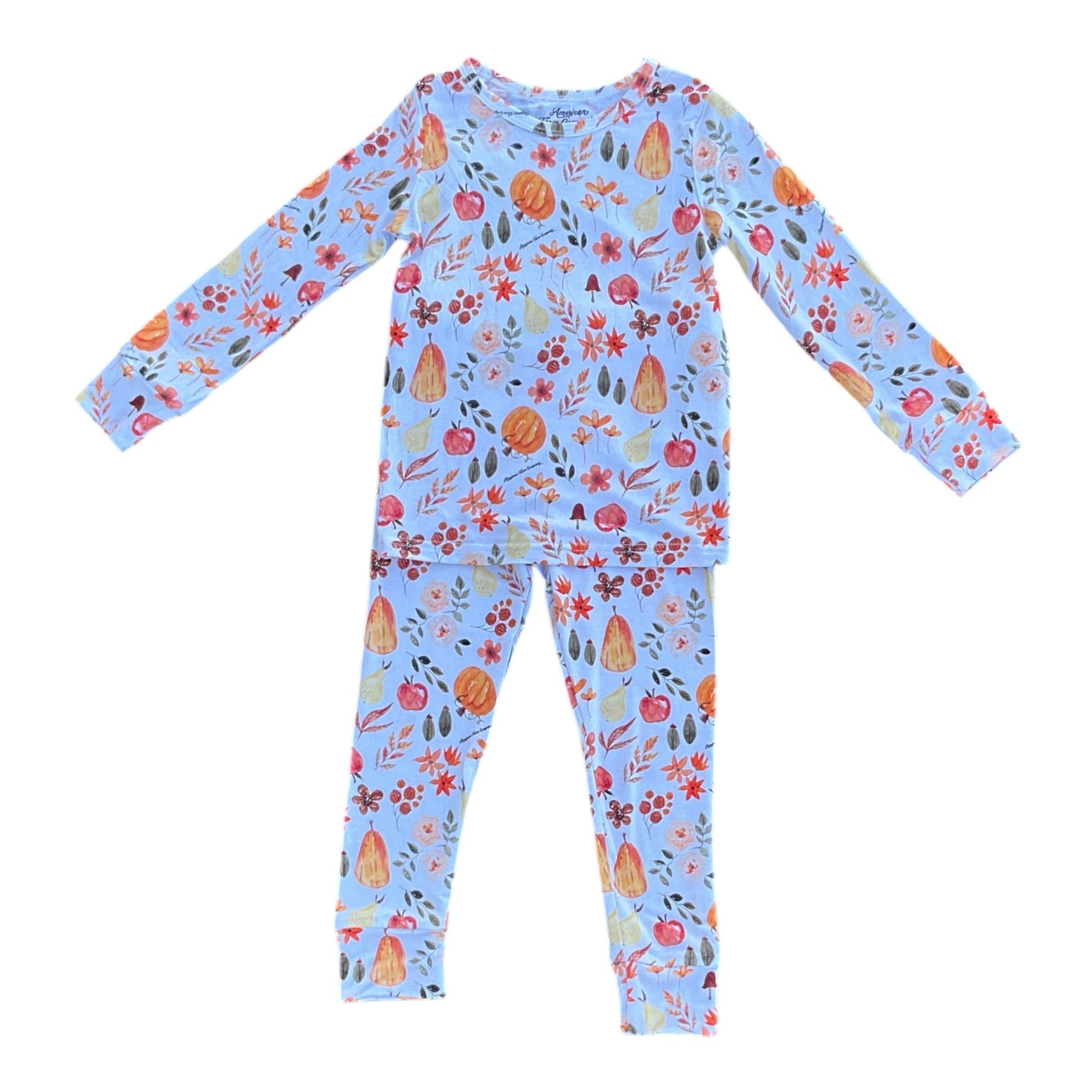 These 2 PC Footless Pajamas are perfect for toddlers. Made with 95% bamboo viscose and 5% spandex, they are not only soft and comfortable but also feature a cute Fall Floral Pumpkin design.